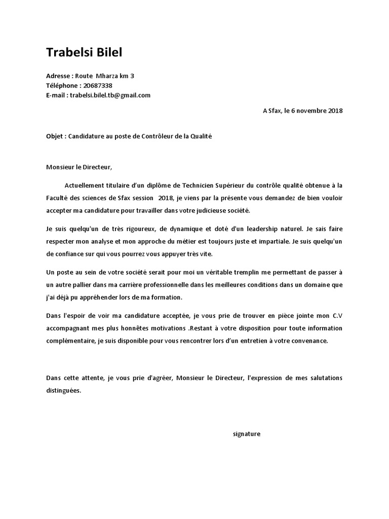 Lettre De Motivation Technicien Controle Qualité